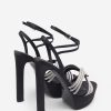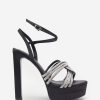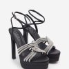 Seraphine London™ channels bold sophistication with these statement platform heels. Crafted from smooth black satin and set on a commanding block heel, the silhouette is accented with a twisted diamanté strap for a touch of shimmer. Finished with a softly padded sole, this design promises lasting comfort through every step, spin, and celebration.
