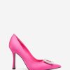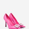 Command the room in Lawless — bold, refined, and made for high-impact entrances. Crafted from luxurious hot pink satin, these pointed court heels are topped with a dazzling diamanté brooche and set on a slender stiletto heel. Perfect for parties, weddings, or any night that calls for unapologetic glamour.