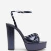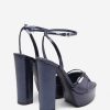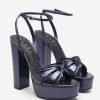 Confident and unapologetically bold, Bold Soul is made for the woman who owns the room. Crafted in metallic navy with a textured reptile finish, these high-impact platforms feature cross-over straps, a rounded toe, and a crystal-detailed buckle. The towering block heel is balanced by a softly padded sole — so you can dance all night without missing a step.