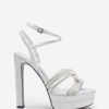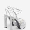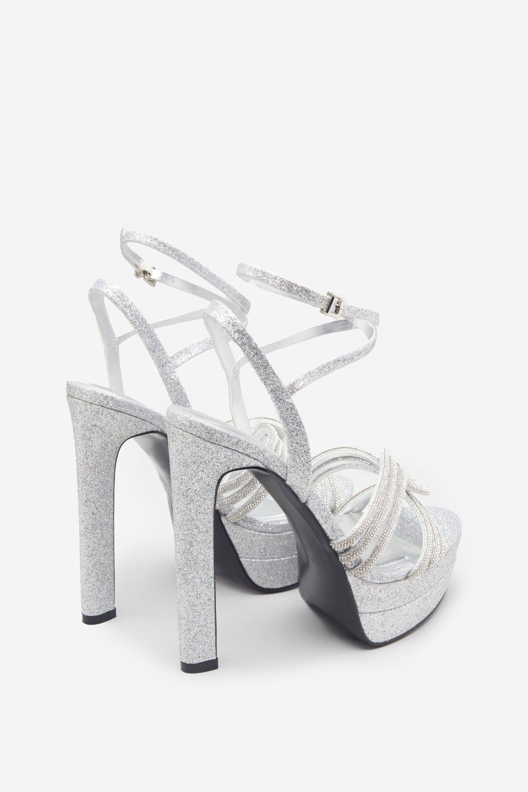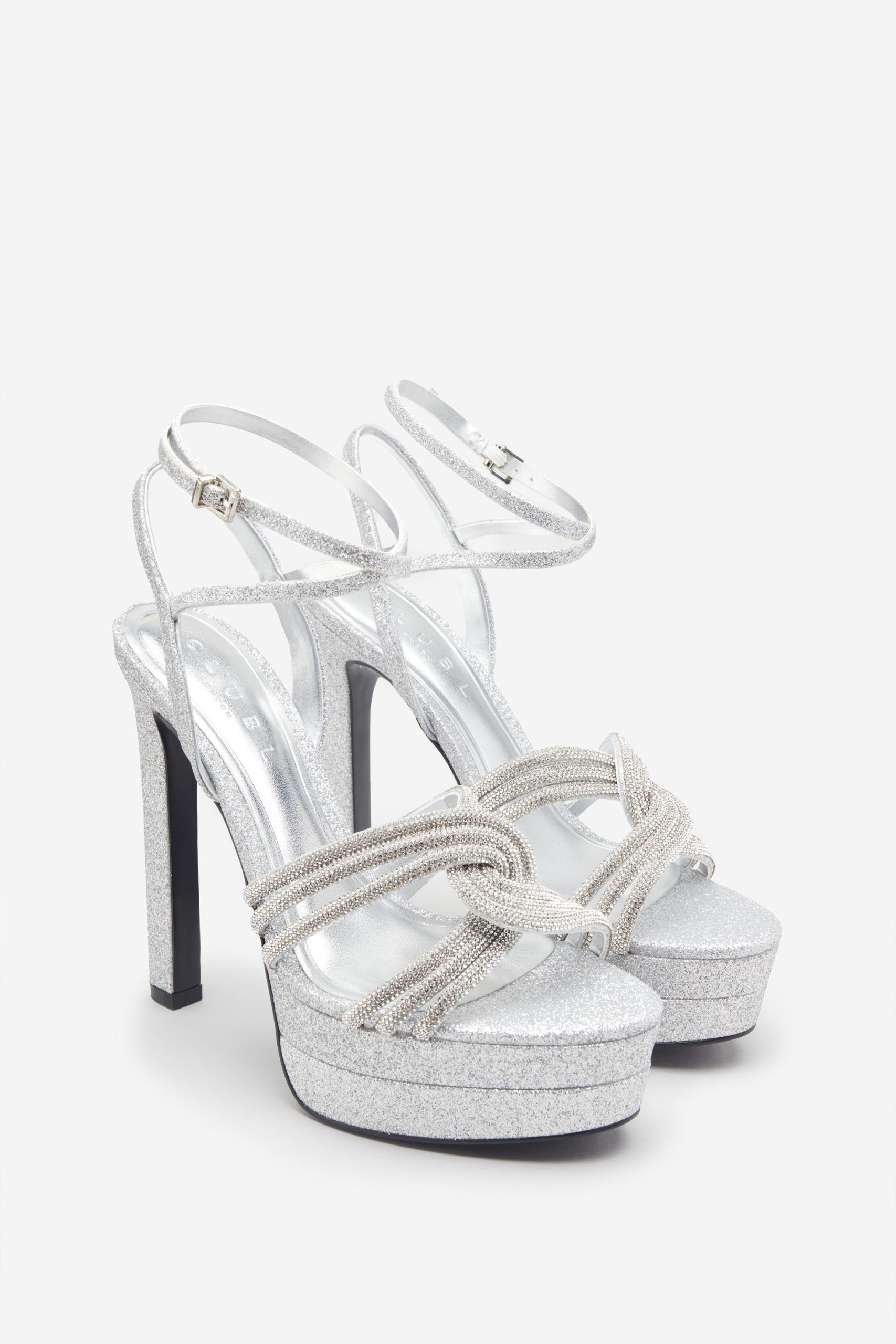 eraphine London™ delivers striking elegance with this platform heel designed for after-dark glamour. Crafted from silver glitter with a bold block heel and rounded toe, the silhouette is elevated by a diamanté-embellished twisted strap. A softly padded sole ensures comfort with every confident step — from your first entrance to the final song.