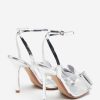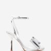 Seraphine London™ delivers subtle glamour with this elegant stiletto, crafted in high-shine silver PU. A softly rounded toe and ankle strap provide structure, while a diamanté-encrusted bow adds a refined sparkle. Finished with a cushioned sole, this design blends sophistication with all-night comfort.