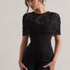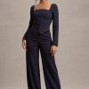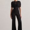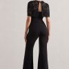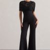 Seraphine London™ channels timeless sophistication with this statement jumpsuit. Designed in premium black scuba crepe, this sculpting silhouette is elevated with an elegant lace overlay and flared-leg cut for dramatic movement. Sleek, romantic, and refined, this all-in-one look pairs effortlessly with strappy heels for a polished evening ensemble.