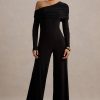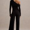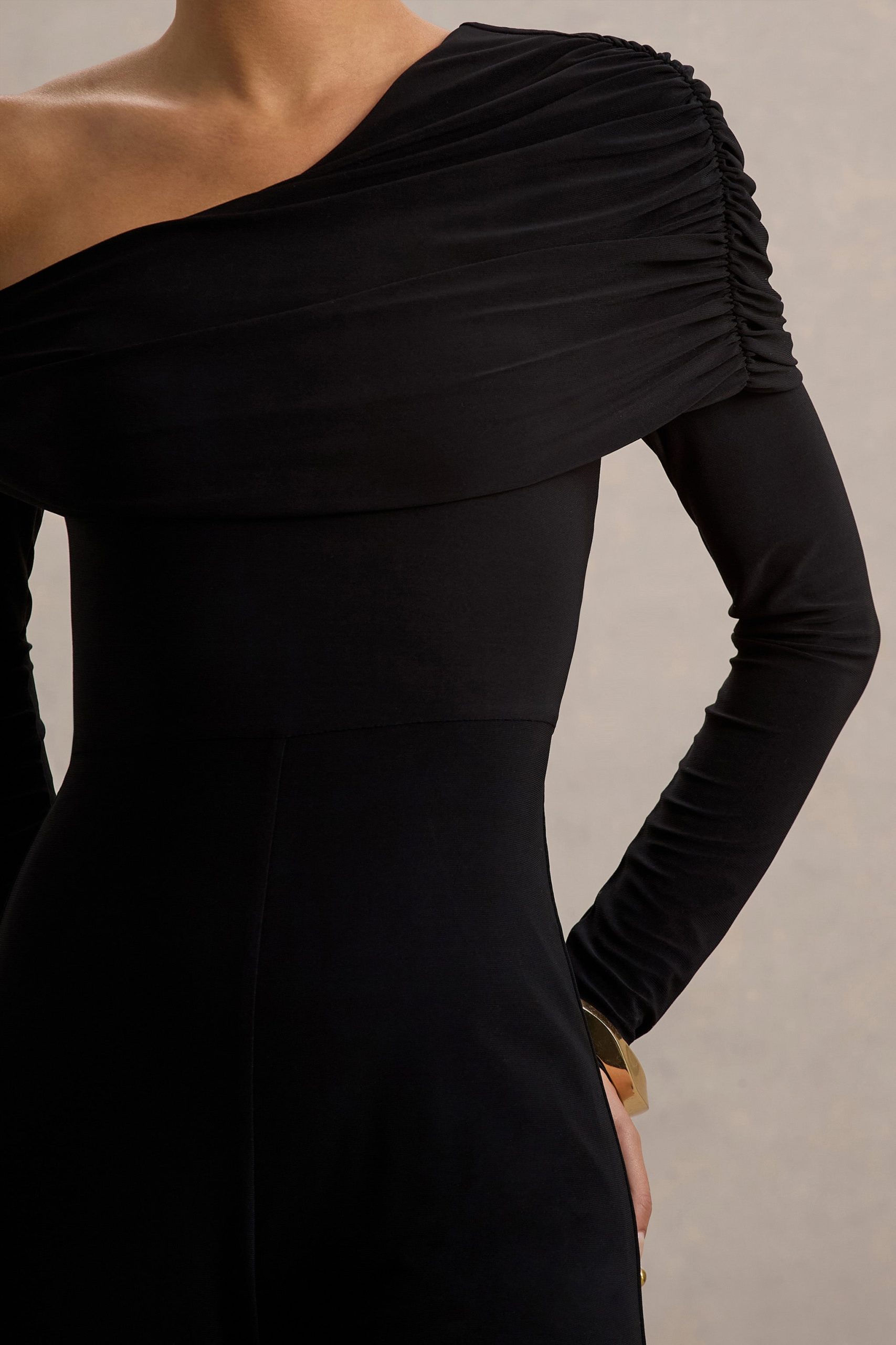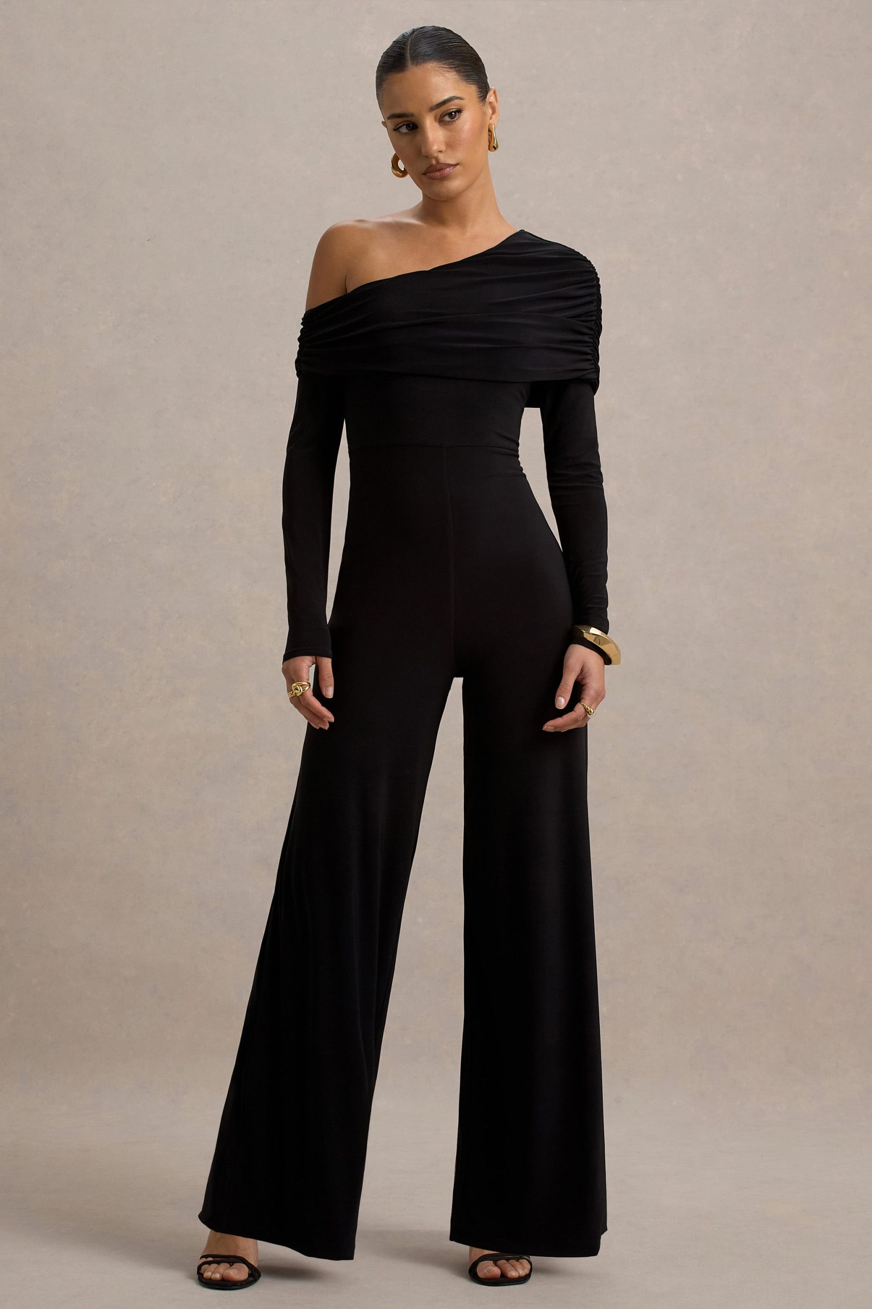 Seraphine London™ presents an understated yet striking silhouette with this elegant black jumpsuit—your go-to for graduations, formal dinners, and refined celebrations. Designed in premium stretch jersey, this style features a contemporary asymmetric neckline and full-length sleeve for a flattering, elevated finish. Cut with wide-leg trousers that graze the floor, this piece moves with sophistication from day to evening.