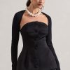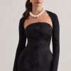 Seraphine London™ presents a versatile layering piece designed to complement any refined look. Crafted from premium stretch crepe, this sleek black shrug adds elegant coverage to sleeveless silhouettes without compromising your outfit’s shape or statement. A timeless wardrobe essential for polished styling throughout the season.