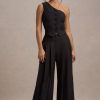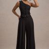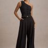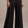 Seraphine London™ delivers a refined staple designed for effortless sophistication. Tailored from premium black stretch crepe, these high-waisted trousers feature soft pleating and a wide-leg silhouette that moves with grace. A hook-and-bar fastening with an invisible zip closure completes the look, perfect for both tailored daywear and after-dark styling.