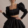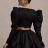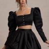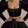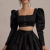 Seraphine London™ introduces a bold layer of elegance with this cropped satin jacket, crafted to frame and elevate your evening ensemble. Designed in sleek black with dramatic puff sleeves, this tailored piece combines structured femininity with modern glamour. Whether styled over a gown or with high-waisted tailoring, it’s a wardrobe accent that exudes confidence.