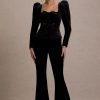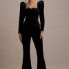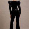 Seraphine London™ introduces a dramatic silhouette infused with opulence and modern edge. Crafted from rich black velvet, these flared-leg trousers sit gracefully at the mid-waist, sculpting the hips before flowing into a statement-making flare. Designed for evenings that demand elegance, this piece pairs effortlessly with sleek tailoring or a curve-enhancing blouse.