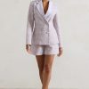 Seraphine London™ introduces a refined warm-weather essential with these soft mauve tailored shorts. Crafted from our premium lace crepe, the high-waisted silhouette features a structured fit with elegant detailing, including belt loops and a subtly elasticated waistband for comfort. Perfectly polished when styled with the matching blazer, or effortlessly chic when worn solo.