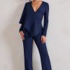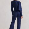 Seraphine London™ elevates classic tailoring with a bold, modern twist in this navy jumpsuit. Crafted from premium stretch crepe, this long-sleeved silhouette features a deep plunging neckline and a dramatic one-shoulder cape that adds instant sophistication. Designed for a flawless fit, this piece flatters the form while offering comfort and movement—perfect for making an impression at any refined occasion.