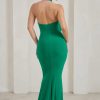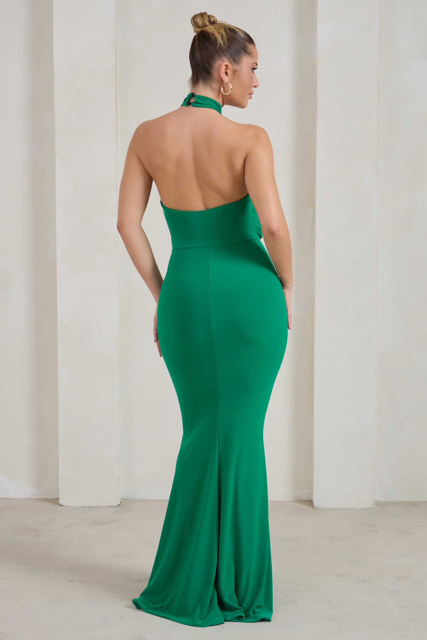 Seraphine London™ delivers timeless elegance with this sculpted maxi dress designed to mesmerise. Crafted from premium stretch jersey in a rich evergreen hue, the silhouette is ruched throughout for a flawless fit. A high halter neckline and open back create a statuesque shape, while the fishtail skirt and split hemline offer fluid movement with every step.