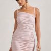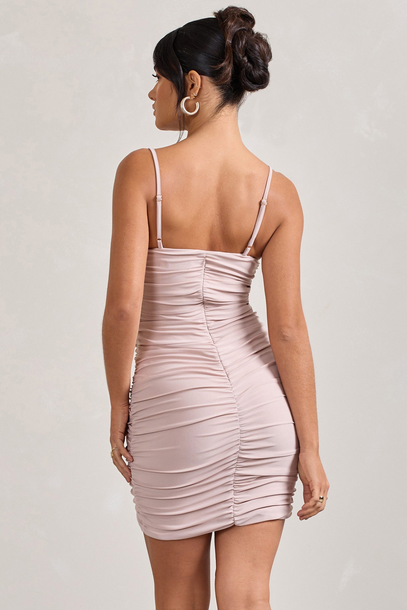 Effortlessly radiant, this dress is designed to catch the light and hold the room. Crafted from premium champagne-toned jersey, this strappy mini dress sculpts the silhouette with soft ruching and asymmetric lines. The adjustable straps and fluid hemline add movement and ease — a flawless choice for soirées, summer nights, and everything in between.