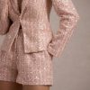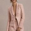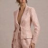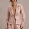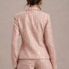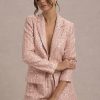 Seraphine London™ redefines modern femininity with this softly tailored blazer, crafted from blush pink sequin boucle. Light-catching metallic threads are delicately woven through its refined silhouette, while peak lapels, long sleeves, and a discreet hook-and-eye closure complete the design. Perfect for day-to-night sophistication, this piece elevates any ensemble with quiet confidence.